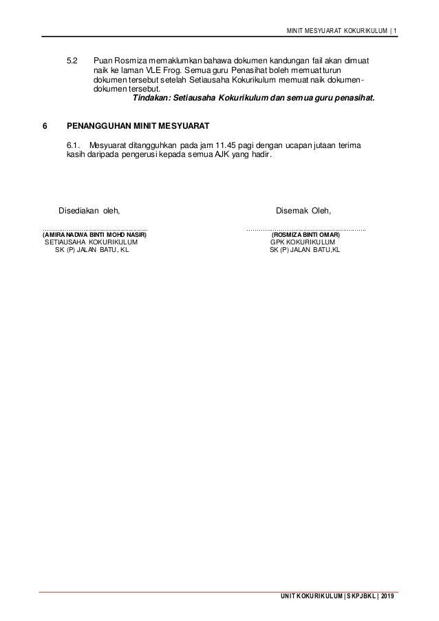 Melahirkan rakyat malaysia yang menghayati nilai 4. Minit mesyuarat kokurikulum kali pertama 2019 converted pages 1 5 text version anyflip. 3 november 2016 tempat : 28 disember 2016 tempat : Minit mesyuarat kokurikulum kali pertama 2 2.3 beliau juga berharap semua guru dapat memberikan komitmen dalam menjayakan aktiviti ko kurikulum sepanjang tahun 2017 tindakan : Minit mesyuarat panitia bahasa melayu. Share to twitter share to facebook. Minit mesyuarat koko kali 2. Mesyuarat dimulakan dengan bacaan surah al fatihah. Minit mesyuarat kokurikulum pertama bagi sesi 2013. Pengesahan minit mesyuarat bil.1 tahun 2019 minit mesyuarat bil. Menghadiri kursus dari semasa ke semasa untuk meningkatkan ilmu dan kemahiran diri. Menyelaras aktiviti kokurikulum iaitu kegiatan sukan dan persatuan/ kelab/ unit berunifom melalui kokurikulum yang diintegrasikan.2.
